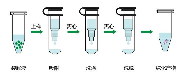 原理是柱由特殊硅基質(zhì)吸附材料構成,可特異性結合DNA,其余蛋白質(zhì)等雜質(zhì)因不被吸附而去除了,過(guò)程中需與離心機配合使用,提取得到的核酸純度有一定保障,但耗樣量較大,反復工作對大通量檢測不友好。